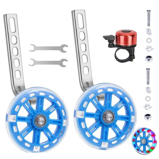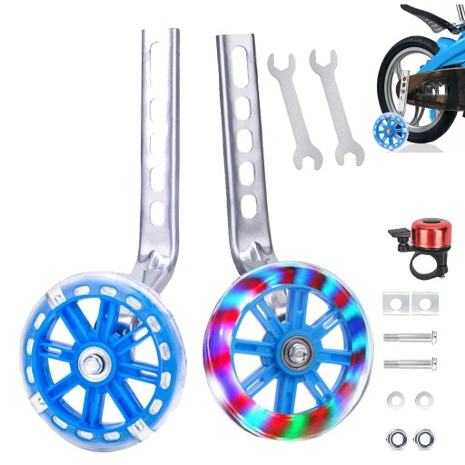 Pomocnicze koła rowerowe dla dzieci, regulowane, z efektem błyszczenia, antypoślizgowe i ciche, zestaw 2 sztuk.