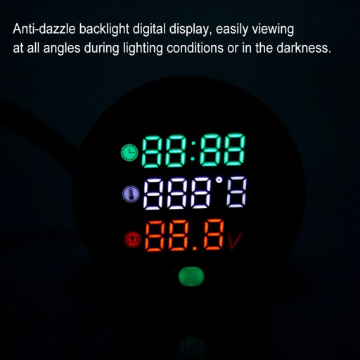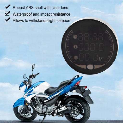 - Termometr, woltomierz i zegar czasu w jednym, wysokiej jakości zestaw do motocykla.