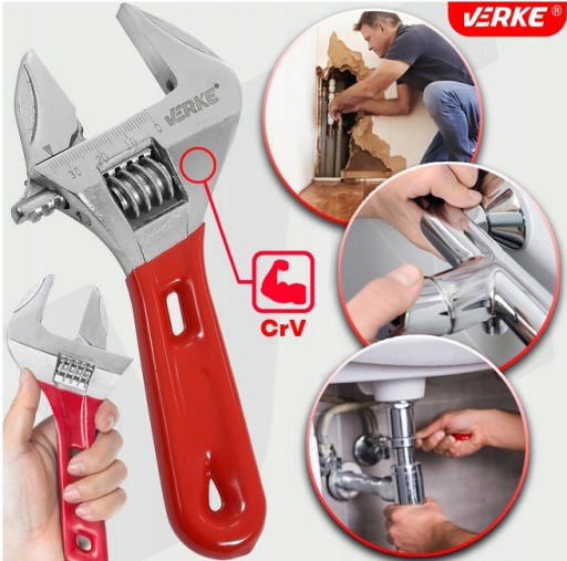 Klucz nastawny do prac w warsztacie , hydraulicznych , serwisowych. Klucz został wykonany ze stali chromowo-wanadowej CrV. Niewielkie rozmiary pozwolą na pracę w trudno dostepnych miejscach. Rękojeść klucza została wyłożona gumą dla pewnego i mocnego chwytu.