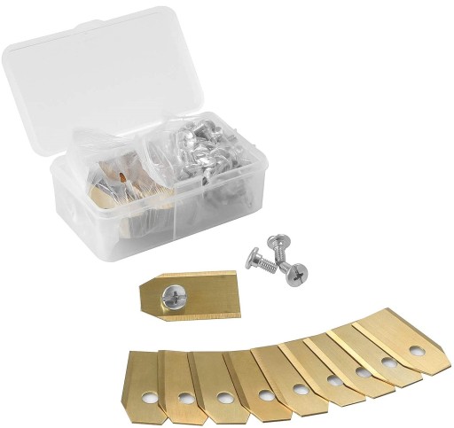 - DŁUGA ŻYWOTNOŚĆ: Zestaw noży jest wykonany ze stali nierdzewnej i ma dodatkową powłokę z węglika tytanu, która zapewnia długą żywotność. Dołączone śruby są również ZE STALI NIERDZEWNEJ!
