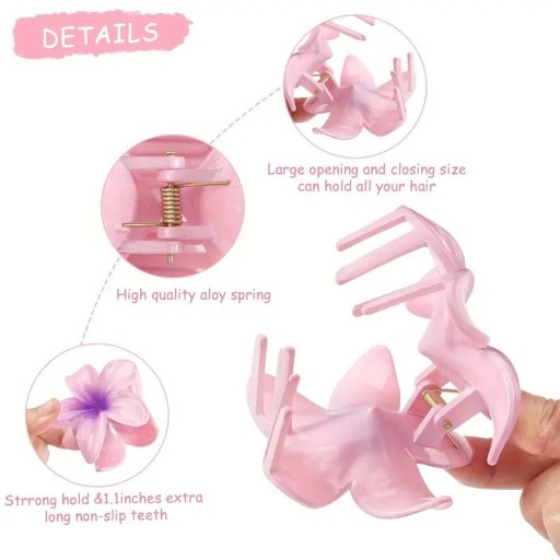 Zapewniając solidne trzymanie nawet dla gęstych pasm włosów, nasza klamra XL w formie kwiatu ombre nie tylko doskonale utrzymuje fryzurę, ale także dodaje jej niepowtarzalnego uroku. Dzięki starannie dobranym kolorom ombre, nasza spinka stanowi efektowny akcent, który wyróżni Cię z tłumu i podkreśli Twój indywidualny styl.