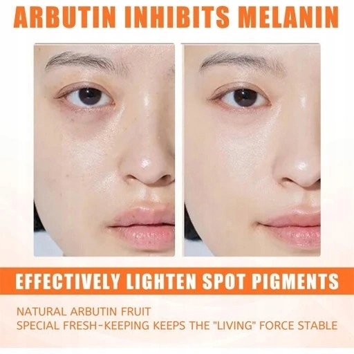 Skład produktu: witamina C, niacynamid, arbutyna, kwas hialuronowy