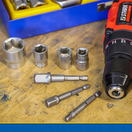 Zestaw specjalistycznych redukcji, adapterów do wkrętarki. Redukcje pozwalają na pracę wkrętarką z nasadkami. Elementy zestawu wykonane są ze stali narzędziowej, która gwarantuje ich wytrzymałość i długą żywotność.
