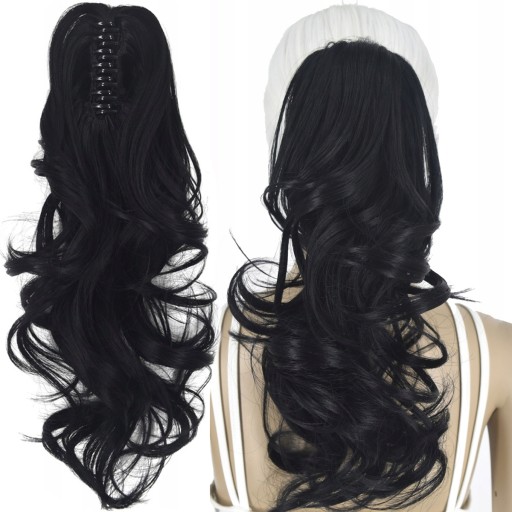 Doczepiany Kucyk Włosy Syntetyczne Czarne 55 cm