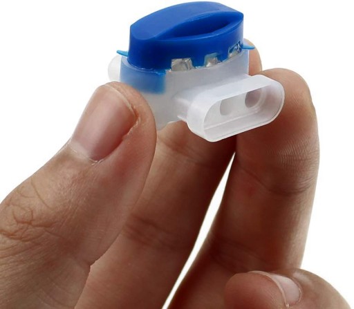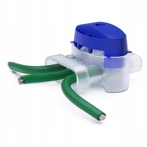 - Zacisk szczelinowy przebija izolację przewodu, wciskając się w przewód.