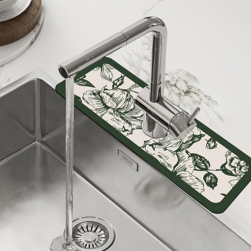 [Praktyczne]: Mata do suszenia to nie tylko podkładka pod kran, możesz także umieścić szczoteczkę do zębów, kubek, mydło do rąk i płyn do naczyń na podkładce odpływowej kranu i używać jej.