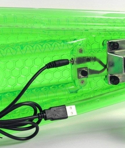 - Ładowanie kablem USB (dołączony do zestawu) Włączanie / wyłączanie / zmiana trybów - odbywa się przez naciskanie / przytrzymywanie przycisku pod deską