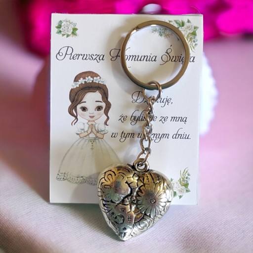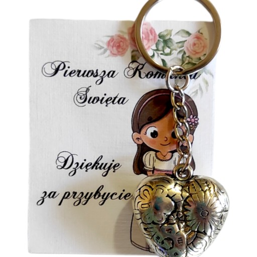 Подарок для гостей, Первое причастие, сердце, гаджет, БРЕЛОК, открытка с благодарностью.