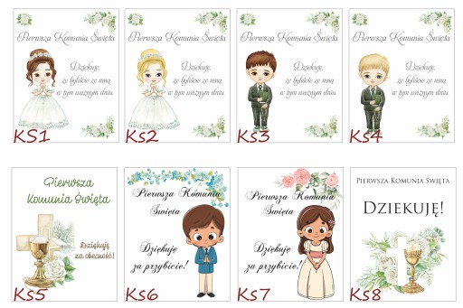 Pamiątka dla gości z okazji Komunii Świętej - KARTECZKA Z PODZIĘKOWANIEM I BRELOKIEM