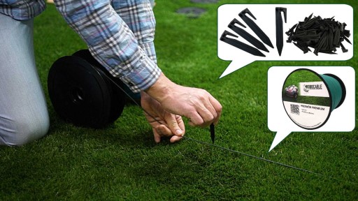 Do mocowania przewodu do trawnika służą specjalne szpilki wykonane z wysokiej jakości tworzywa sztucznego odpornego na warunki atmosferyczne. Dzięki zastosowaniu szpilek przewód jest solidnie przymocowany do ziemi, nie jest narażony na przypadkowe przecięcie przez kosiarkę a emitowany sygnał nie jest zakłócany.