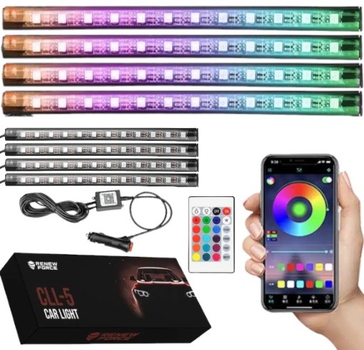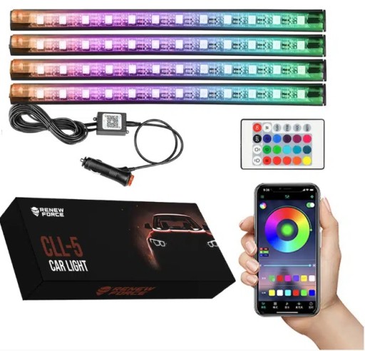 Zestaw świecących listw RGB stworzy niepowtarzalny klimat we wnętrzu Twojego samochodu. Sterowane za pomocą pilota lub aplikacji diody LED świecą się na wiele kolorów i na różne sposoby, w zależności od upodobań. Wystarczy odpowiednio przymocować listwy i rozłożyć okablowanie w samochodzie i cieszyć klimatycznym oświetleniem.