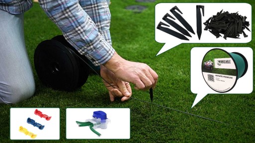 Do mocowania przewodu do trawnika służą specjalne szpilki wykonane z wysokiej jakości tworzywa sztucznego odpornego na warunki atmosferyczne. Dzięki zastosowaniu szpilek przewód jest solidnie przymocowany do ziemi, nie jest narażony na przypadkowe przecięcie przez kosiarkę a emitowany sygnał nie jest zakłócany.