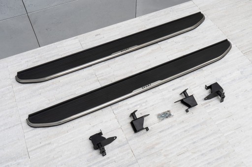 W zestawie komplet stopni bocznych (prawy i lewy), elementy montażowe oraz instrukcja. Progi montowane są na fabrycznych punktach montażowych. Montaż stopni nie wymaga wiercenia dodatkowych otworów! Zalecamy profesjonalny montaż w warsztacie (z doświadczenia wiemy że najlepiej skorzystać z usług zakładu lakierniczego lub blacharskiego ponieważ to te zakłady zajmują się najczęściej montażem listew, dokładek oraz stopni, więc montaż dla tych zakładów jest czynnością intuicyjną).
