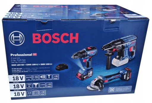Набор электроинструментов 18V Bosch 0615990M GBH 180-LI GSR 18V-50 GWS 180-LI