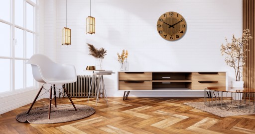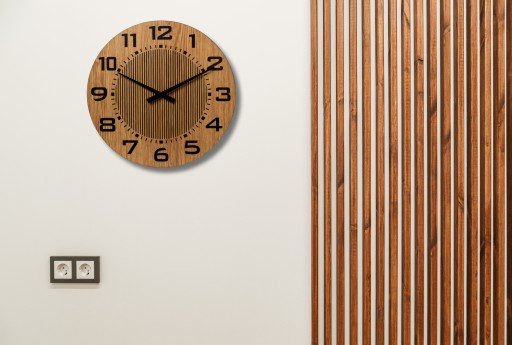 Materiał wysokiej jakości: Zegar wykonany jest z dwóch warstw trwałej płyty HDF o łącznej grubości 6 mm, co gwarantuje długą żywotność produktu. Dodatkowo efekt drewna wykonany z wysokiej jakości okleiny drewnopodobnej.