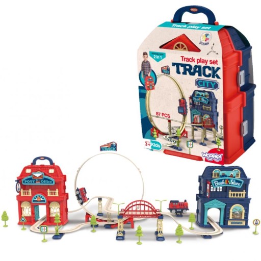 WOOPIE Kolejka Elektryczna 2w1 Składana w Walizkę 87 el.