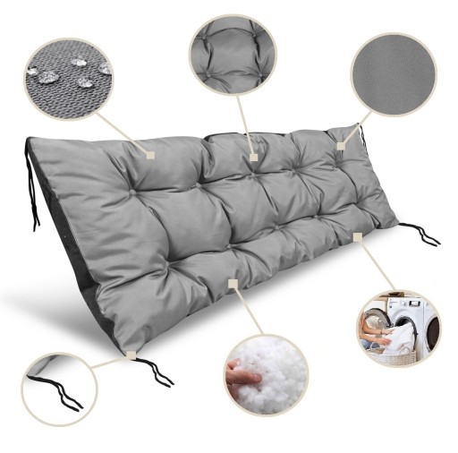 Poduszka gwarantuje najwyższą jakość i niezawodność, dzięki stosowaniu tkaniny GARDEN DECOR, która jest wodoodporna i odporna na przetarcia. Bez względu na to, czy używamy poduszki na ławce, palecie czy huśtawce, możemy być pewni jej trwałości i wytrzymałości w każdym środowisku.