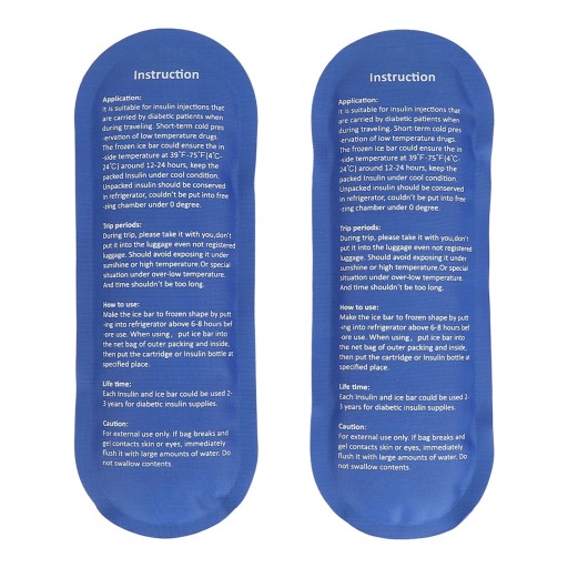 1. OPAKOWANIA Z LODEM ŻELOWYM: W zestawie 2 opakowania z lodem żelowym wielokrotnego użytku, które utrzymują temperaturę insuliny 2–3C przez okoo 6–8 godzin po zamrożeniu (dokadny czas zależy od rzeczywistej temperatury otoczenia).