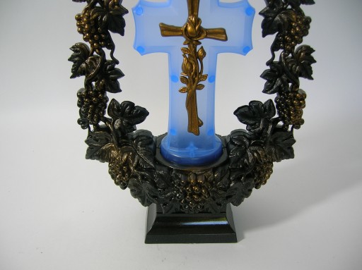 Witam w ofercie świecący krzyż led z ciekawymi zdobienia wokół. Całość wykonana jest z tworzywa sztucznego dlatego też jest dość lekka. Jak widać na załączonym zdjęciu świecący krzyż jest w kolorze niebieskim. Kompozycja zasilana jest bateriami które są w zestawie. Jest to bardzo elegancka lampka led.