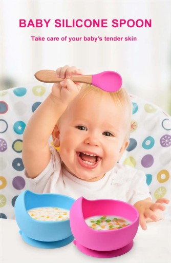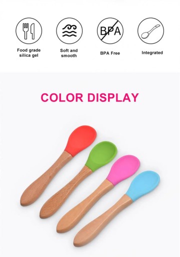 1PCS Baby Wooden Spoon Silicone Wooden Baby Feeding Spoon Organic Soft Tip Spoon BPA Free Food Grade Material Handle Toddlers