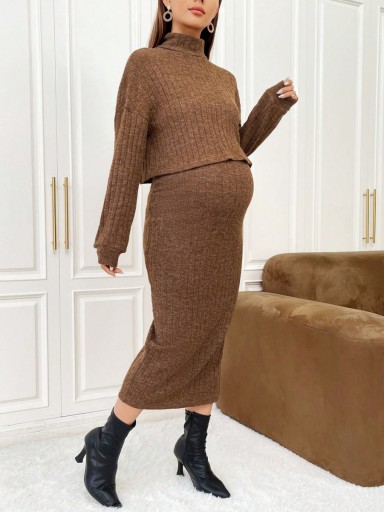 SHEIN MATERNITY KOMPLET SWETER I SPÓDNICA MIDI L