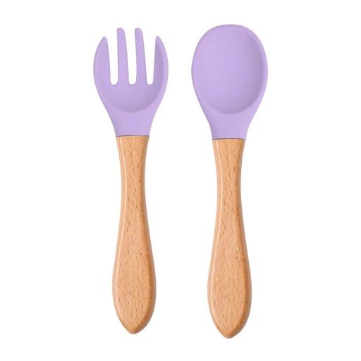 2 шт. детская мягкая силиконовая ложка ярких цветов, безопасная детская обучающая деревянная вилка