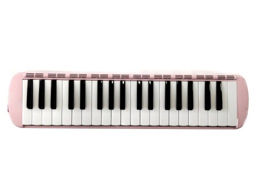 Budowa instrumentu jest koloru różowego, klawisze również są koloru różowego.