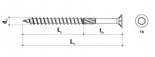 Wkręty do konstrukcji drewnianych z łbem stożkowym, gniazdo Torx