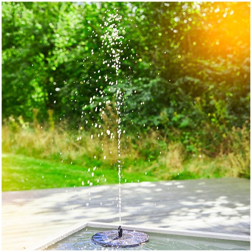 Fontanna solarna zasilana jest energią słoneczną, którą przekazuje bezpośrednio do silnika umieszczonego pod taflą wody, odpowiedzialnego za uruchomienie pompy. Fontanna dostosowuje swoją moc do nasłonecznienia. W słoneczne dni strumień jest większy niż w pochmurne. Ma to na celu zapobiegać zaprzestaniu natrysku.