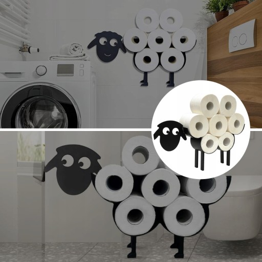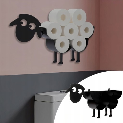 Stojak w kształcie owcy/barana, jest solidnie wykonany w modnym i stylowym kolorze czarnym. Z pewnością wprawi w dobry humor wszystkich odwiedzających toaletę.