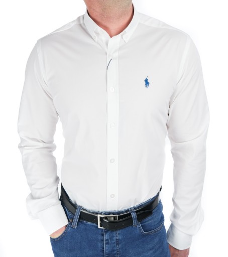 Ekskluzywna koszula męska marki POLO RALPH LAUREN, to koszula pożądanej marki, której nikomu nie trzeba przedstawiać. Wykonana jest w 100% z najlepszej jakościowo bawełny. Wszystkie szczegóły widoczne są na zdjęciach, które zostały wykonane na nasze zlecenie, więc dostajecie Państwo produkt za który zapłaciliście, bez żadnych nieprzyjemnych niespodzianek. Koszula ma fason slim fit, a dzięki staranności producenta nie krępuje ruchów i jest bardzo dobrze dopasowana do każdej sylwetki.