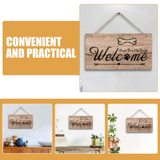 ✅Wykonany z płyty gęstości, ten zestaw wiszących zawieszek, zawierający tabliczki powitalne i wiszące liny, jest dekoracyjny, dzięki czemu można go wygodnie umieścić na drzwiach, ścianie, drzewie, drzwiach wejściowych, tabliczce drzwiowej itp. Idealny do dekoracji sklepu, hotelu lub innego miejsca na powitanie gości.