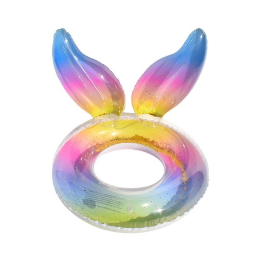 DMUCHANE KOŁO DO PŁYWANIA TĘCZOWE Z BROKATEM RYBI OGON SYRENKA PŁETWY 90CM