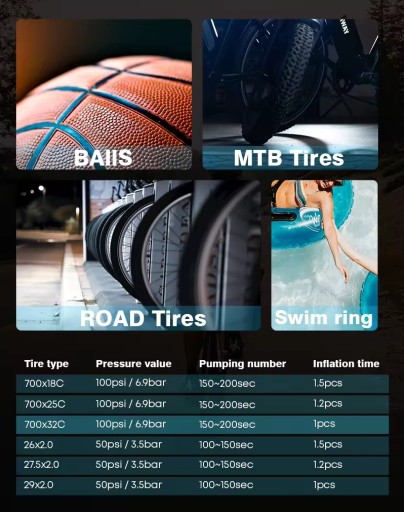 Мини-электрический велосипедный насос, беспроводной компрессор, шоссейный горный велосипед 100 фунтов на квадратный дюйм