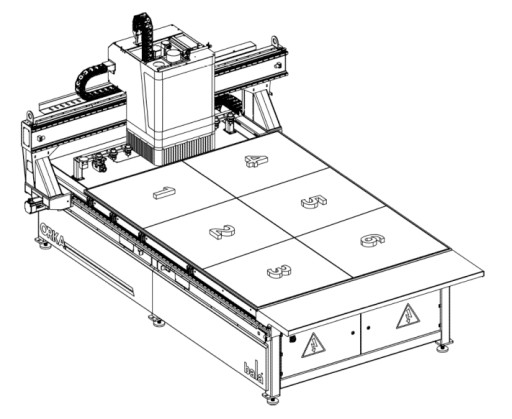 - Stół roboczy maszyny podzielony jest na 6 asymetrycznych stref podciśnienia. Liczne strefy podciśnienia zapewniają mocniejszy chwyt podczas cięcia.