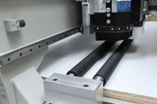 - Dynamiczne i zmieniające położenie rolki dociskowe do cięcia małych części, a także cięcia wielu paru płyt jednocześnie.