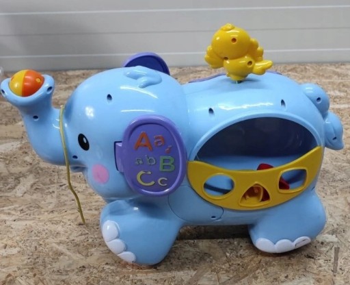 Naciskaj kolorowe przyciski i ucz się kolorów, kształtów oraz cyfr. Pociągnij za sznureczek Super Słonia, a usłyszysz miłe melodie oraz zobaczysz jak trzepocze uszami!