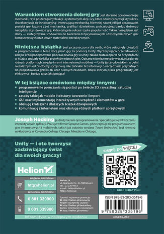 Warunkiem zbudowania dobrej gry jest staranne opracowanie jej mechaniki, czyli poszczególnych akcji i systemu tych akcji. Gry, które odniosły największy sukces, charakteryzują się innowacyjną i interesującą mechaniką. Niemniej nawet jeśli już opracowałeś projekt gry, łącznie z jej mechaniką, grafiką i dźwiękiem, potrzebujesz bardzo dobrego narzędzia, aby utworzyć grę, która osiągnie sukces i zyska popularność. Takim narzędziem jest Unity -- zintegrowane środowisko do tworzenia trójwymiarowych i dwuwymiarowych gier komputerowych oraz innych materiałów interaktywnych.Niniejsza książka jest przeznaczona dla osób, które osiągnęły biegłość w programowaniu i teraz chcą pisać gry za pomocą Unity. Wyczerpująco przedstawiono kolejne kroki podejmowane podczas pisania gry w Unity. Nauka została oparta na przykładach: w książce znalazło się kilka projektów różnych gier. Opisano również metody wdrażania gier na różnych platformach, między innymi internetowej i mobilnej -- Unity jest środowiskiem w pełni niezależnym od platformy sprzętowej. Nie zabrakło również informacji o narzędziach przydatnych do projektowania grafiki 3D oraz o innych zasobach, dzięki którym praca programisty staje się efektywna i bardzo satysfakcjonująca!W tej książce omówiono między innymi:- programowanie poruszania się postaci po świecie 3D, raycasting i sztuczną inteligencję- zasoby takie jak modele i tekstury: tworzenie i import- GUI oraz implementację interaktywnych urządzeń i elementów w grze- obsługę krótszych i dłuższych ścieżek dźwiękowych- komunikację z internetem oraz obsługę różnych platform sprzętowych