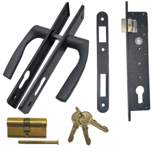 - KLAMKA ALUMINIOWA Z SZYLDEM STALOWYM W ROZMIARZE 90 WKŁAD.