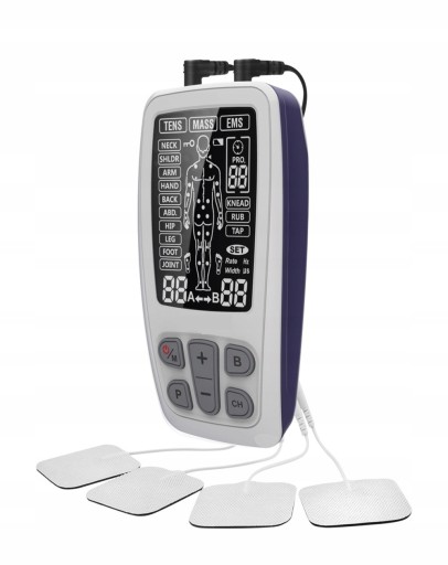 Dwukanałowy elektrostymulator do terapii TENS, EMS oraz masażu.