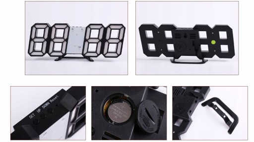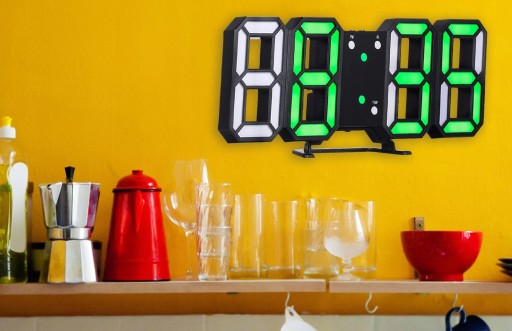 Nowoczesny elektroniczny zegar z dużym wyświetlaczem LED Jego ciekawy, niestandardowy wygląd świetnie prezentuje się w każdym wnętrzu będzie pasował zatem zarówno do sypialni, jak i do pokoju dziennego oraz młodzieżowego, a nawet biura.