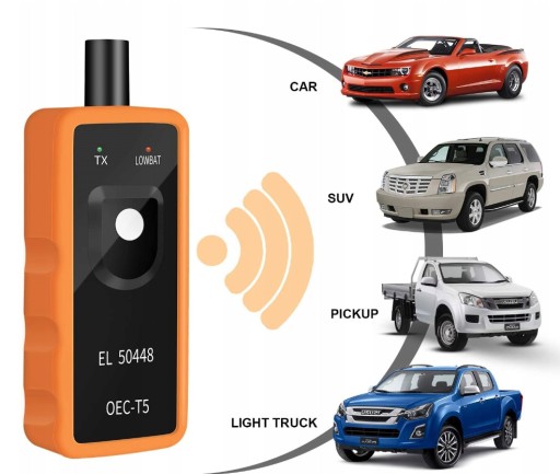 Programator czujników TPMS EL-50448 to urządzenie, które służy do kalibracji czujników ciśnienia w oponach. Aktywator współpracuje tylko z oryginalnymi czujnikami TPMS, gdzie częstotliwość nadawania fal to 433 MHz dla samochodów europejskich lub 315 MHz dla amerykańskich. Przydatny przy wymianie opon letnich na zimowe lub odwrotnie, przy awarii lub uszkodzeniu czujnika ciśnienia w oponach.