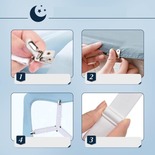 ✅【Trwały】 Wysokiej jakości elastyczna opaska zapewnia mocne i długotrwałe mocowanie. Wysokiej jakości chromowane klipsy są trwałe i niełatwe do złamania. Zintegrowane plastikowe zęby mocno trzymają prześcieradła, nie uszkadzając tkaniny.