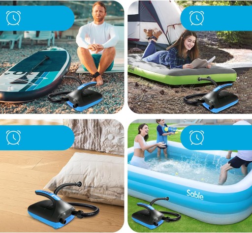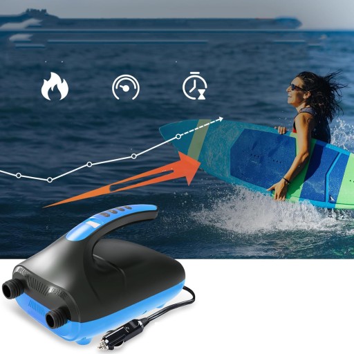 - Szybko i łatwo nadmuchuje i spuszcza powietrze z SUP (deski do wiosłowania na stojąco) i nadmuchiwanych basenów do uprawiania sportów wodnych.