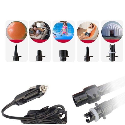 - Pompka SUP jest wyposażona w elastyczny wąż powietrzny o długości 3,6 stopy i 5 odłączanych dysz powietrznych, które pasują do 90% produktów dostępnych na rynku.