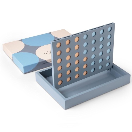 Klasyczna gra Four in a Row (Cztery w rzędzie) wydana przez PRINTWORKS w pięknej kolorystyce i minimalistycznej estetyce. Przywołaj dziecięce wspomnienia i ciesz się grą.