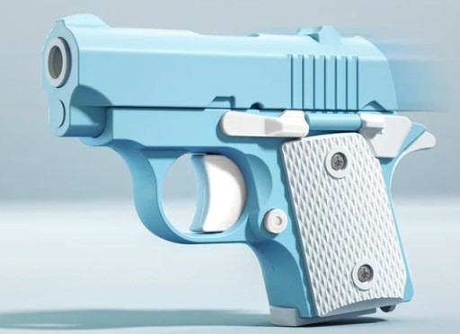 Po naciśnięciu spustu górna część pistoletu przesuwa się i wydaję dźwięk strzelania.
