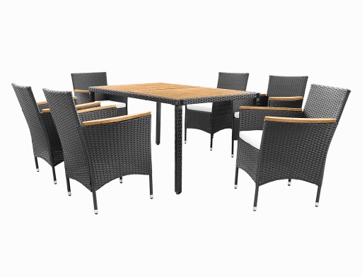✔️ 6 krzeseł z poduszkami (zdejmowany pokrowiec z możliwością wyprania) - podłokietniki z drewna akacjowego,