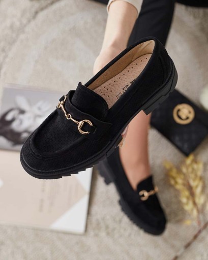 CZARNE MOKASYNY DAMSKIE Z OZDOBĄ IMERILLA