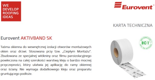 Taśma okienna, paroizolacyjna Eurovent® AKTIVBAND SK do wewnętrznej izolacji otworów montażowych okien, żaluzji i drzwi w technologii tzw. „Ciepłego Montażu”.